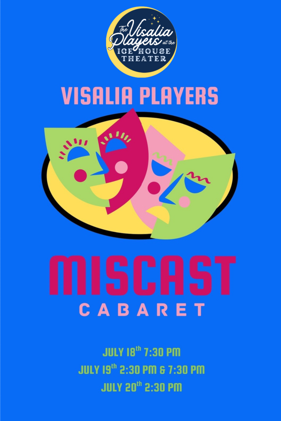 The Visalia Players would like to formally invite you to “Miscast: A Broadway Cabaret” happening July 18th (7:30PM), July 19th (2:30PM & 7:30PM), and July 20th (2:30PM).