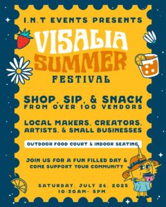 - N.T. (It’s a Neighborhood Thing) hosts Visalia Summer Festival from 10:30-5 at the Visalia Convention Center, 303 E. Acequia. Shop, sip and snack from over 100 local makers, creators, artists and small businesses. www.instagram.com/itsaneighborhoodthing