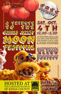 “For me, the Moon Festival has always been a lantern of light. For decades families gathered in China Alley to taste mooncakes and to watch lion dancers and Gumyo Taiko. It’s important not only because it celebrates Chinese tradition, but has become a celebration for the entire Hanford community. It’s a way of saying; this history belongs to all of us. The Festival’s return after the 2021 Taoist Temple arson feels like a phoenix rising, proof that our heritage, like the moon itself, may be obscured at times, but always shines again. I’m grateful for the Carnegie Museum’s help in making that happen” says Arianne Wing, President of the China Alley Preservation Society.