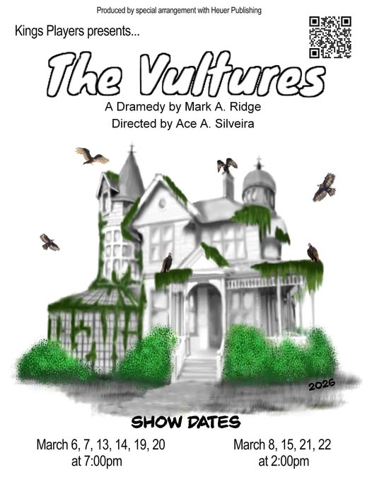 The Kings Players are putting on “The Vultures,” a dramady in the vein of Agatha Christie located in a gloomy haunted house for the reading of a will. Runs March 6-22. 514 Visalia St., Hanford. 559 584-7241 or www.kingsplayers.org